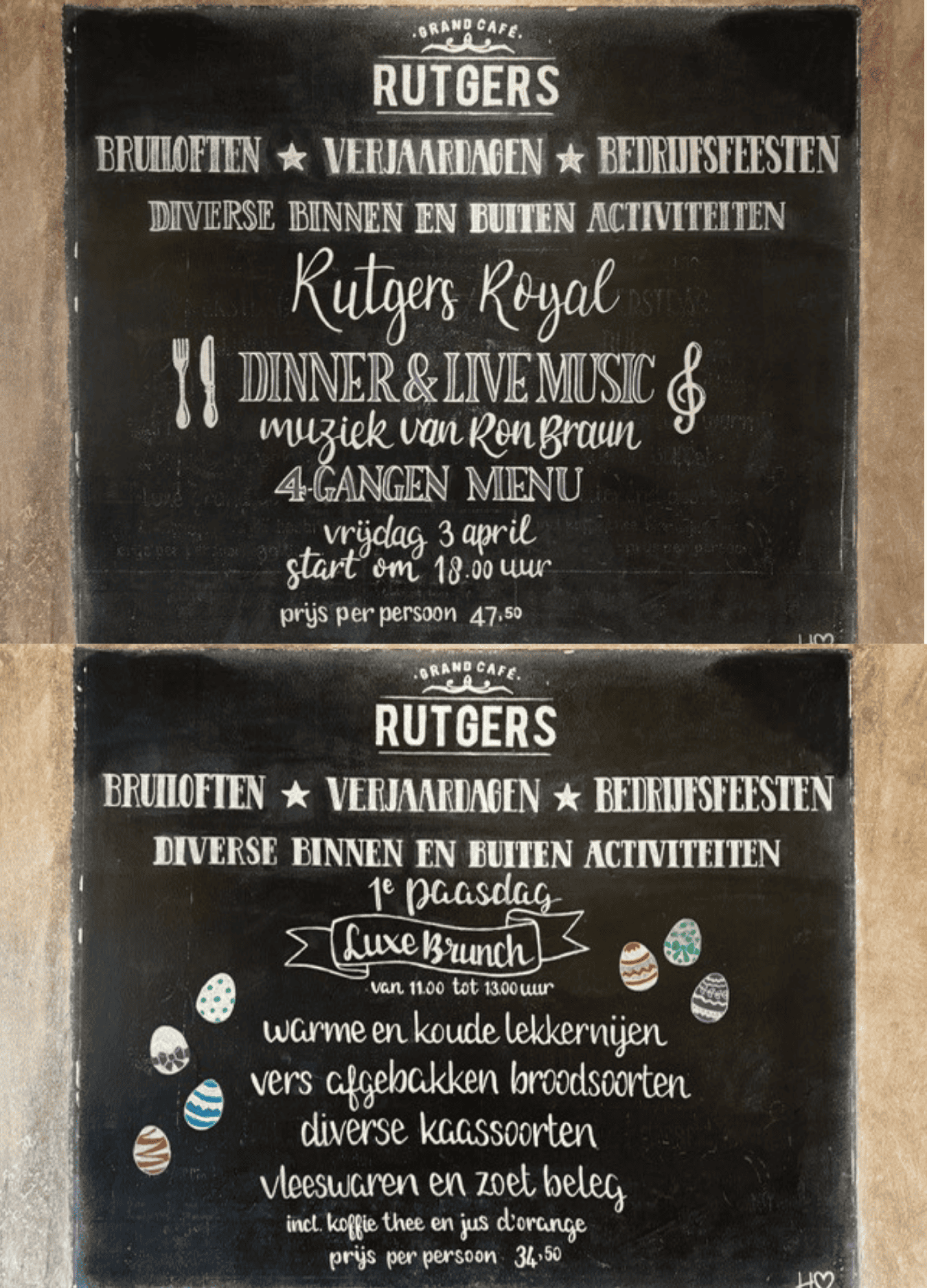 Bel of mail Grand Café Rutgers en vraag naar de mogelijkheden!